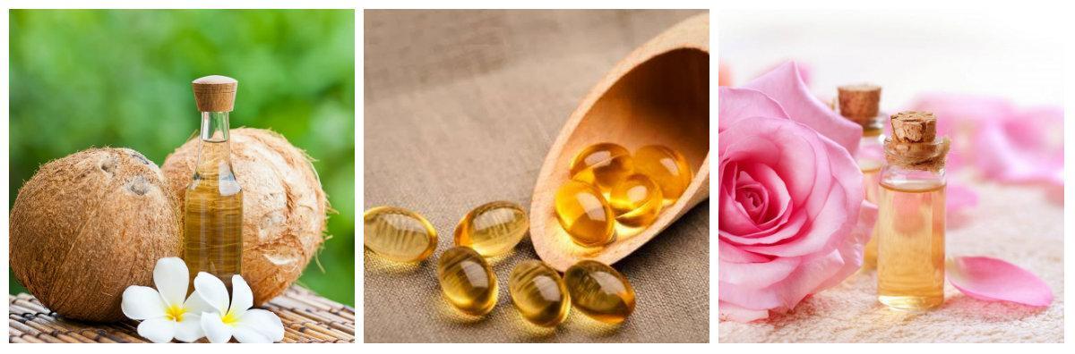 phối hợp vitamin E với dầu dừa và nước hoả hồng.